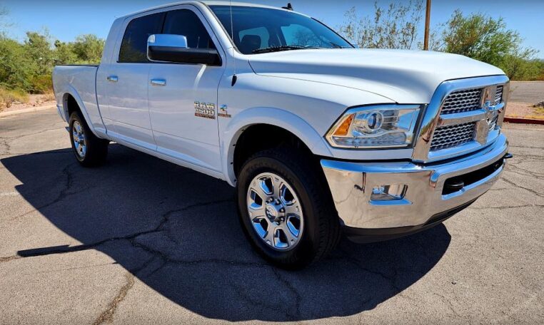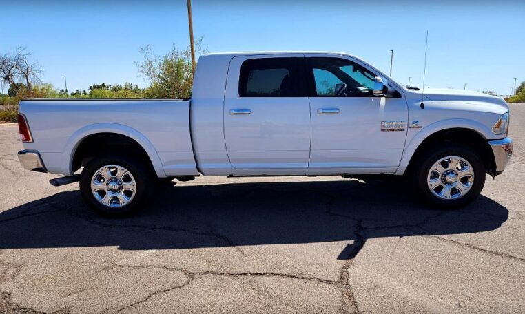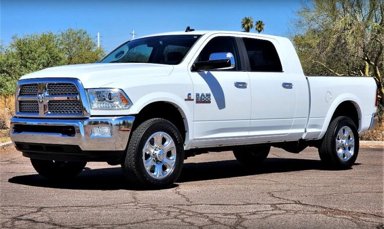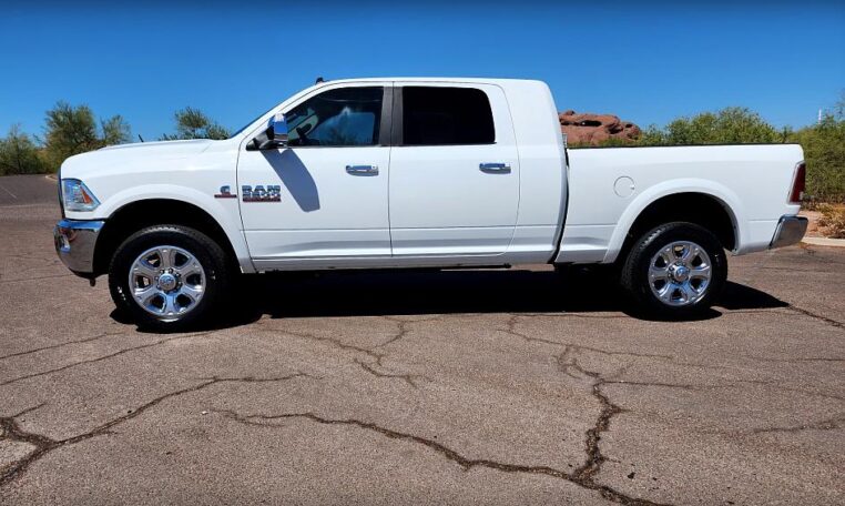 *** New Arrival *** Here’s a beautiful 2014 Ram 2500 Mega Cab 4×4 powered by the legendary 6.7L Cummins Turbo Diesel. Loaded up Laramie package with leather interior, air conditioned and heated seats, large touch screen display with navigation, back up camera and many integrated apps, factory Alpine premium sound system, steering wheel audio controls, Hands Free Bluetooth phone controls. Built to haul and ready to tow, this beautiful Ram has all the towing upgrades like the factory trailer and exhaust braking systems and 5th wheel hook up. Factory 20′ Chrome wheels with nearly new A/T tires. AMP Research power drop down running boards. Fully serviced and inspected, Carfax Certified and Guaranteed, Buy with Confidence. Please feel free to contact us with any questions or to schedule a test drive. Thanks!