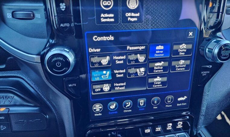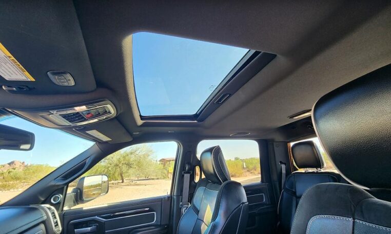 The navigation system not only delivers accurate directions but increases this vehicles value, furthermore the Ram back-up camera gives you additional safety when backing up. The parking sensors detect nearby children, mailboxes or other obstacles in order to prevent accidents at the same time the Keyless Start contains safeguards to ensure that your car doesn’t spring to life at the wrong time. You can let sun or moonlight in with the push of a button with the power roof, not to mention the remote engine start comes in handy during both the hottest and coldest parts of the year.